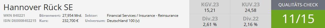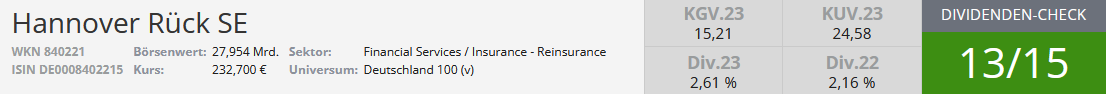 Hannover Rück | 0,15 | 232,50 € | 34,88 € |