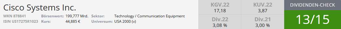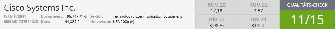 Neu im Sparplan habe ich "Cisco Systems" aufgenommen. Ab Januar werde ich monatlich 25 Euro investieren bis meine Investmentquote erreicht ist.